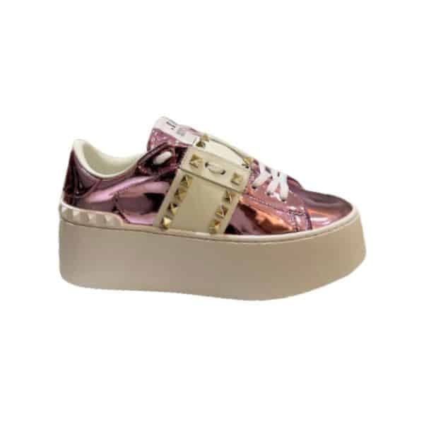 Valentino Garavani Flatform Rockstud Untitled Sneaker Metallic Pink