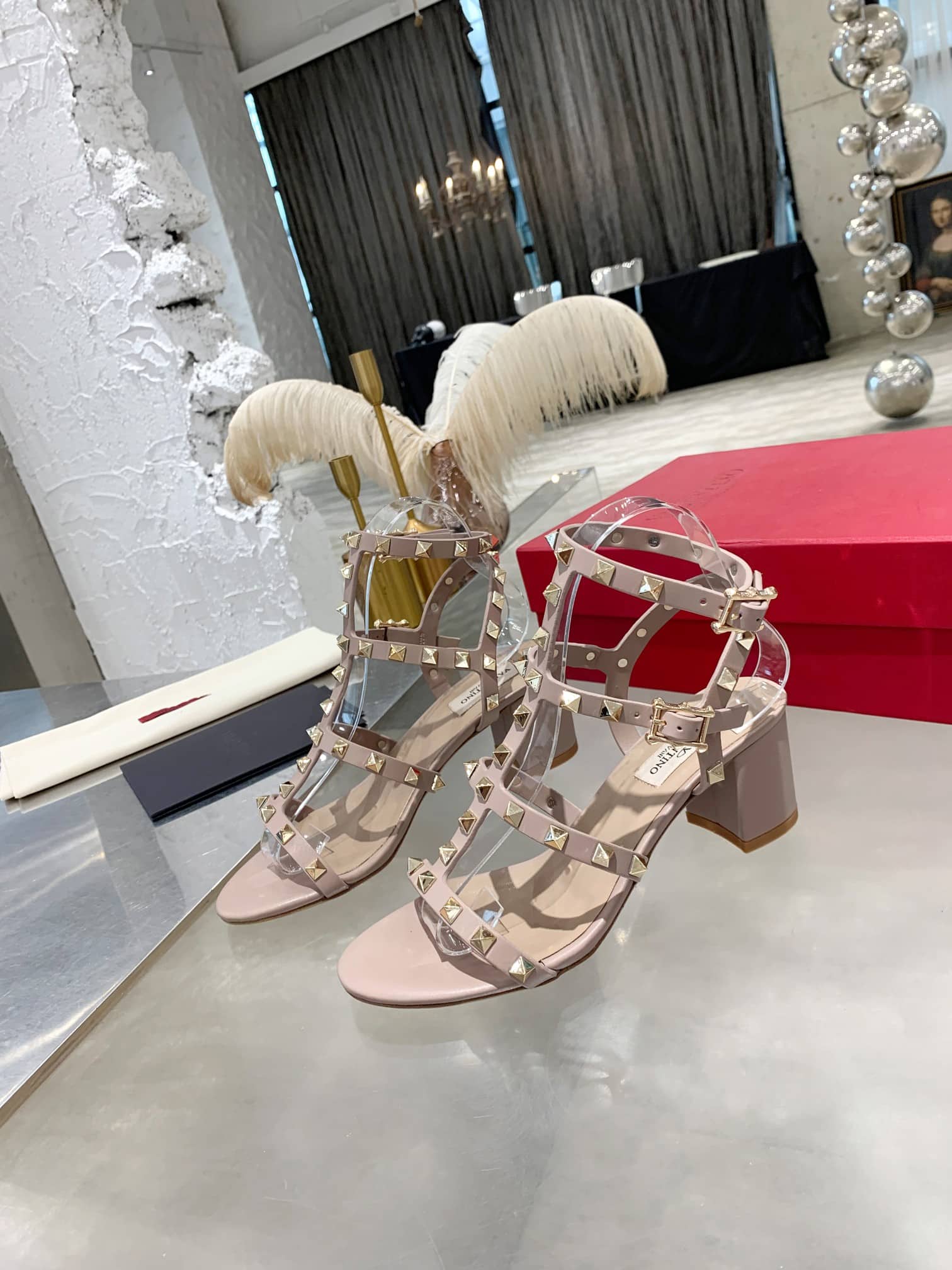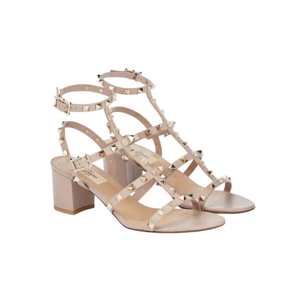 Valentino Garavani Rockstud Calfskin Leather Sandal Beige