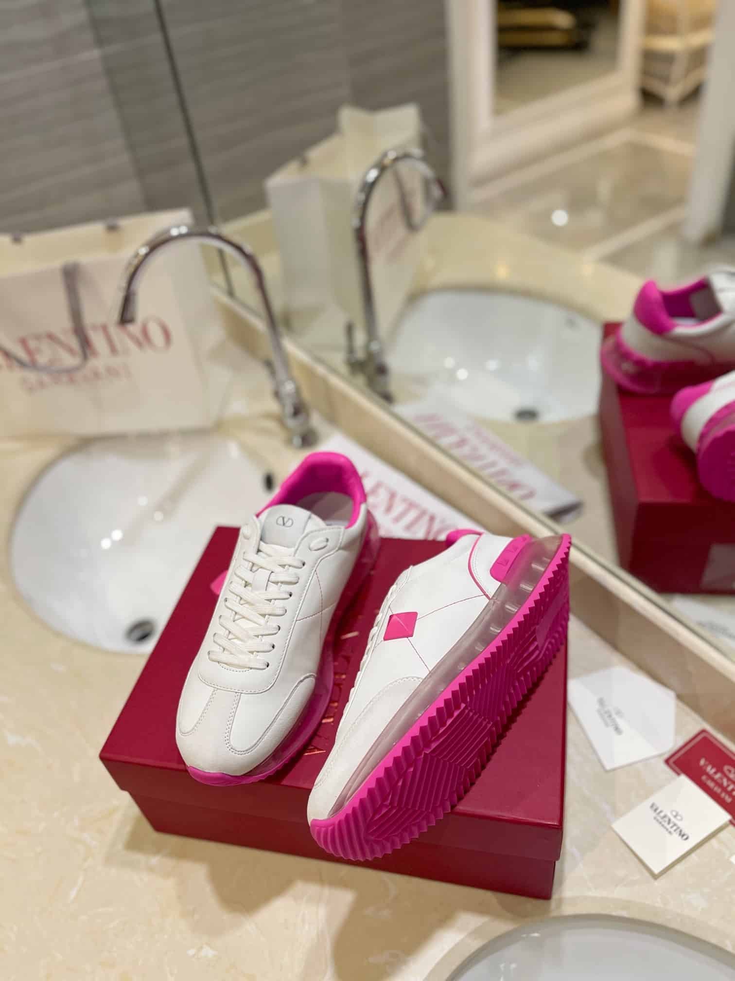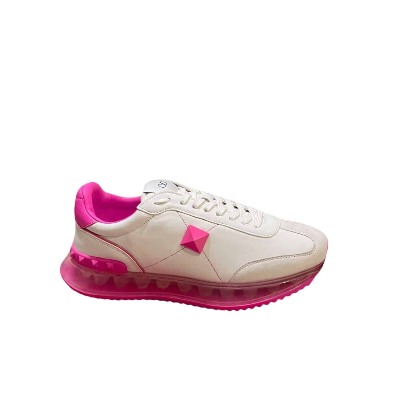 Valentino Garavani Stud Around Low Top Calfskin And Nappa Leather Sneaker Pink