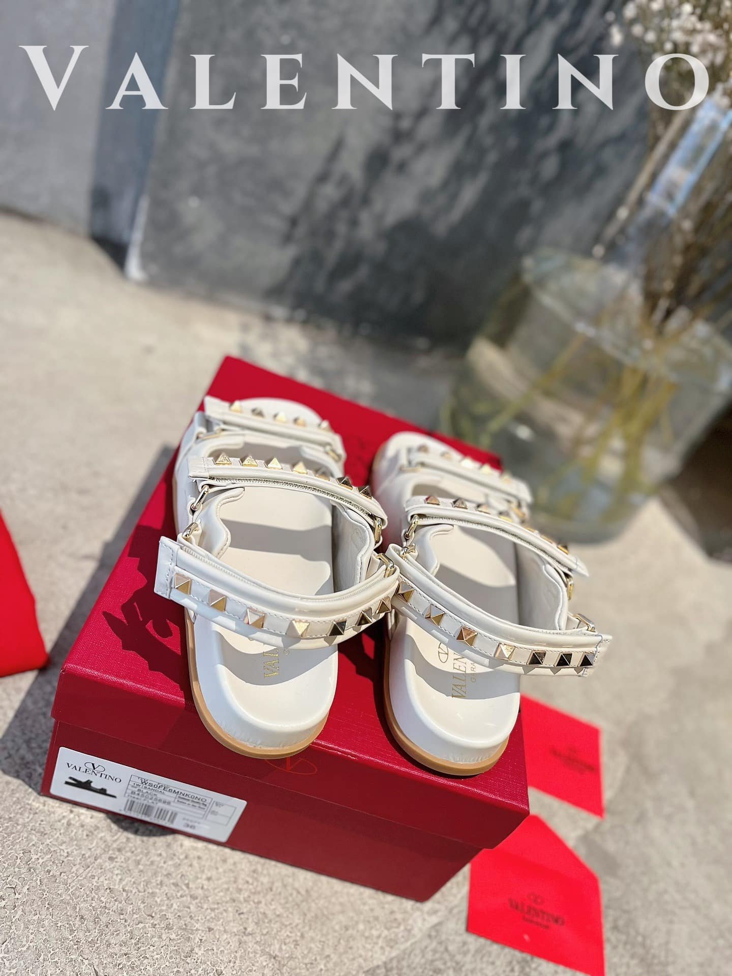 Valentino Garavani Rockstud Leather Wedge Sandals Beige