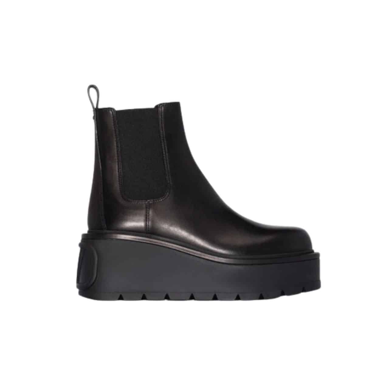 Valentino Garavani Uniqueform V Logo Leather Platform Boots Black
