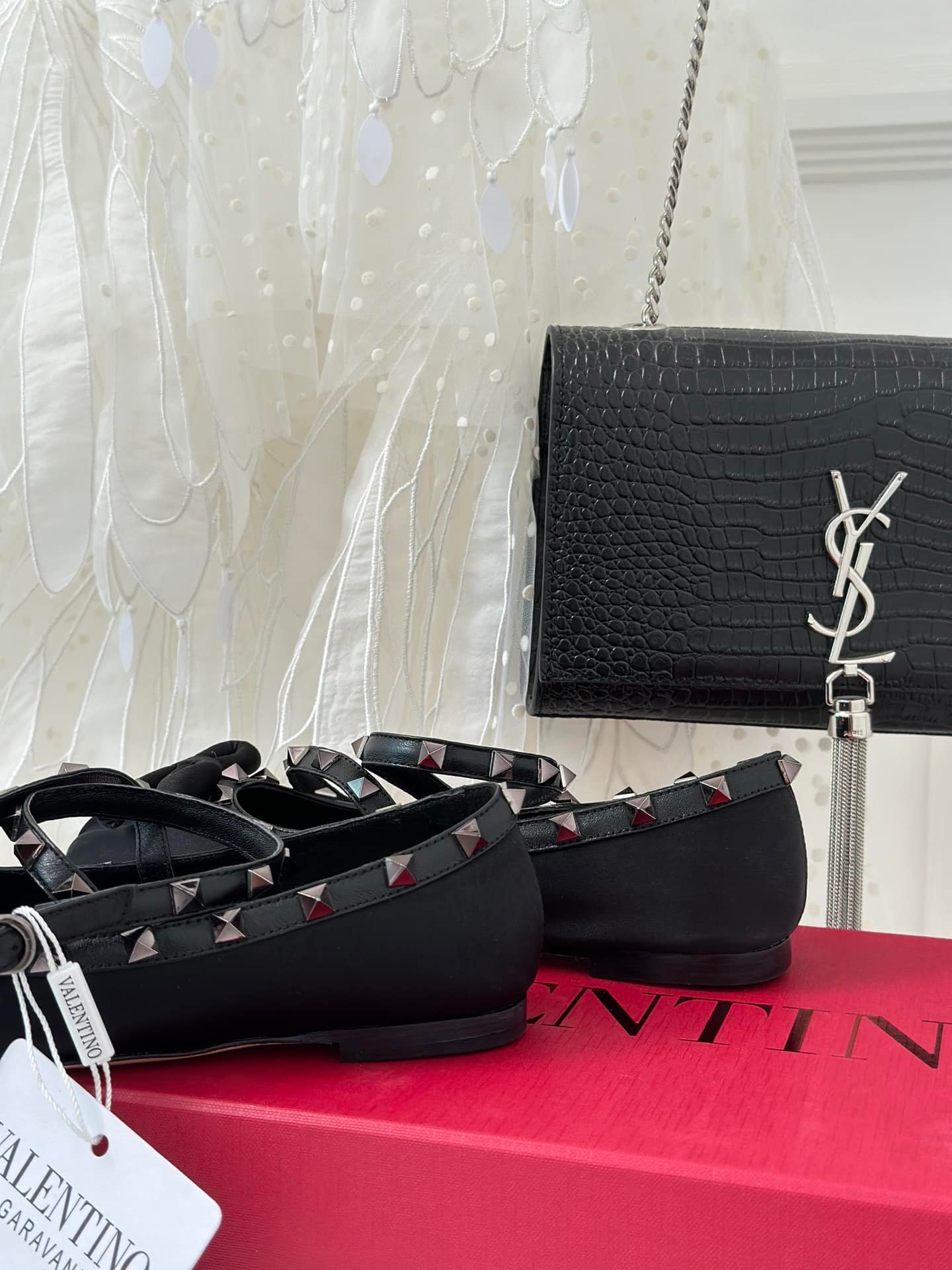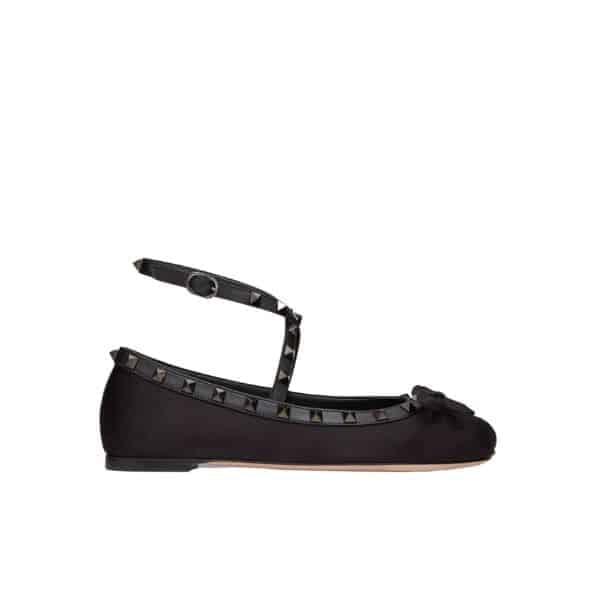 Valentino Garavani Rockstud Satin Ballerinas With Tone On Tone Studs Black 3W2S0Hb6Eql 0No