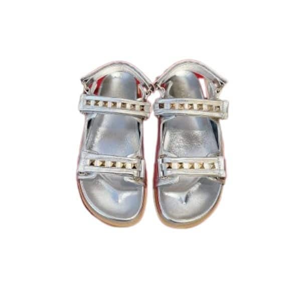 Valentino Garavani Rockstud Flat Sandal In Nappa Leather For Woman In Silver