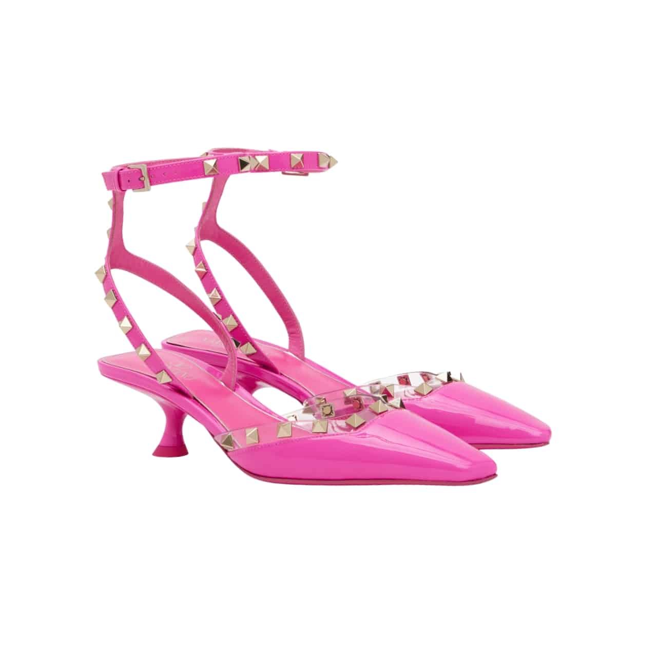 Valentino Garavani Rockstud Wispy Mule In Calfskin Magenta