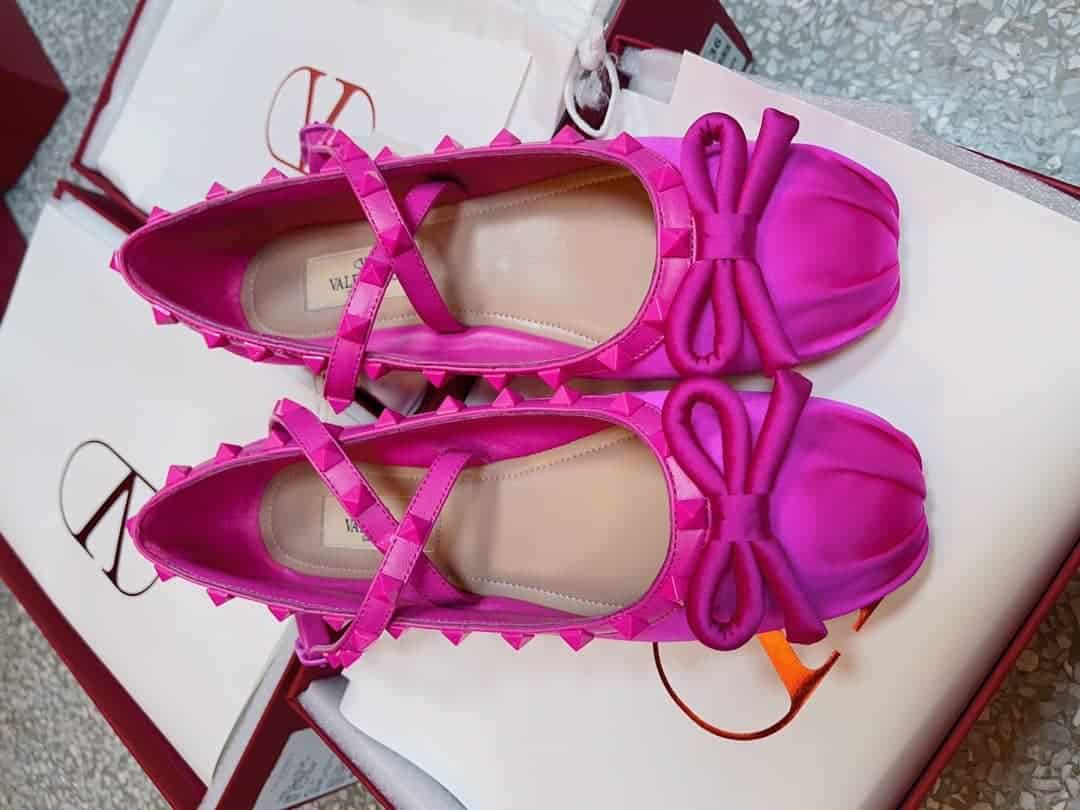 Valentino Garavani Rockstud Satin Ballerinas With Tone On Tone Studs Pink 3W2S0Hb6Mju Uwt