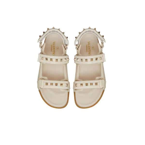 Valentino Garavani Rockstud Flat Sandal In Nappa Leather For Woman In White