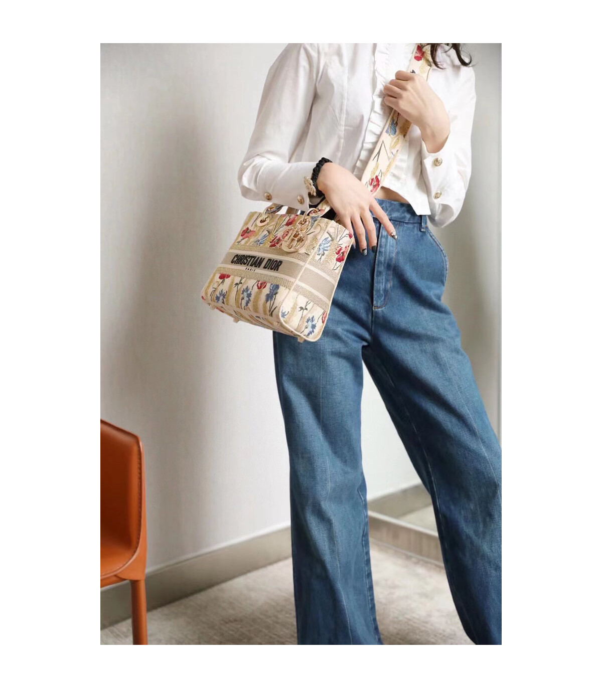 �C The bag may be paired with different embroidered straps