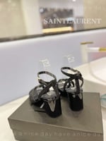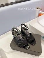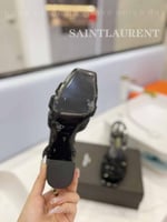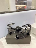 • Saint Laurent Tribute Leather Sandals Metallic Black