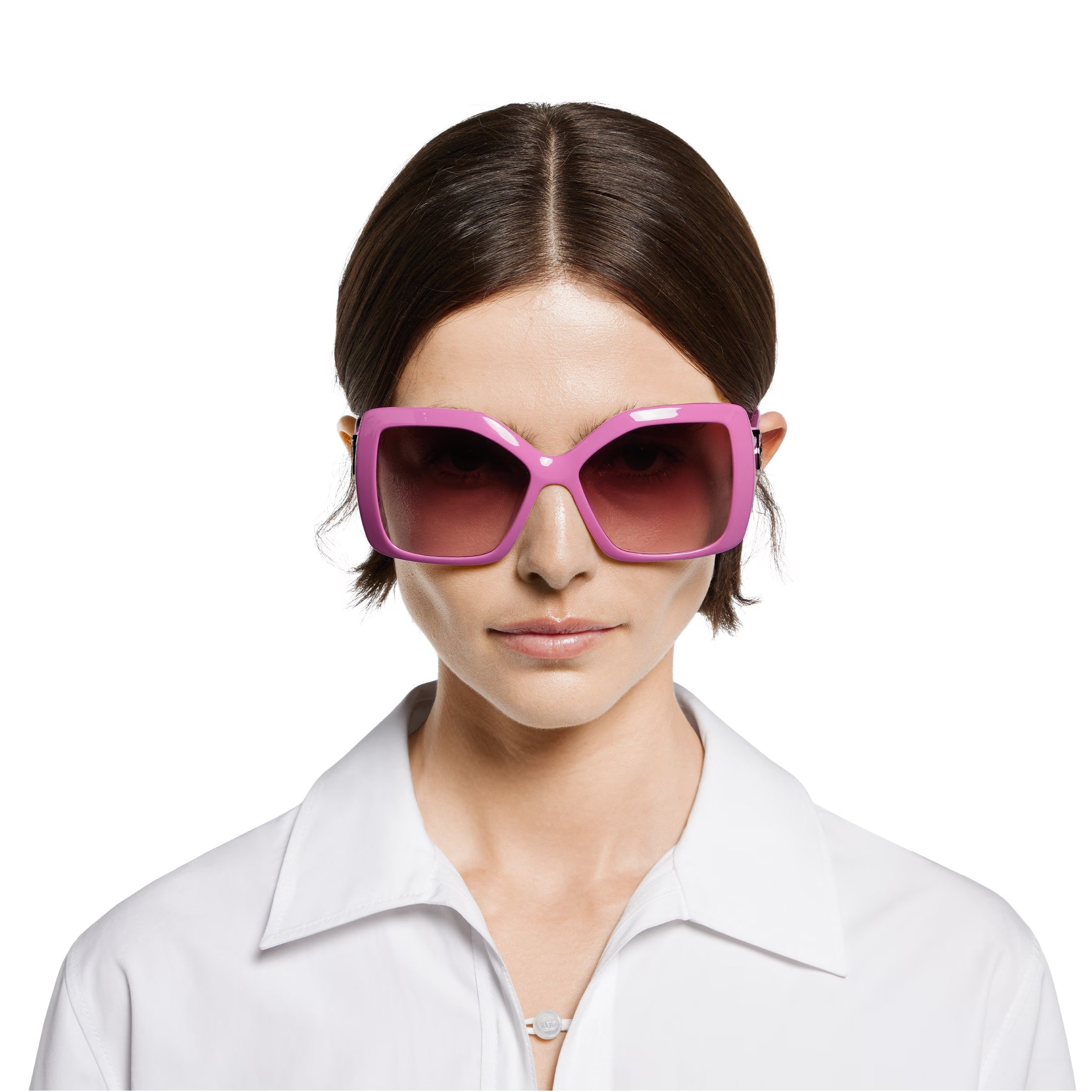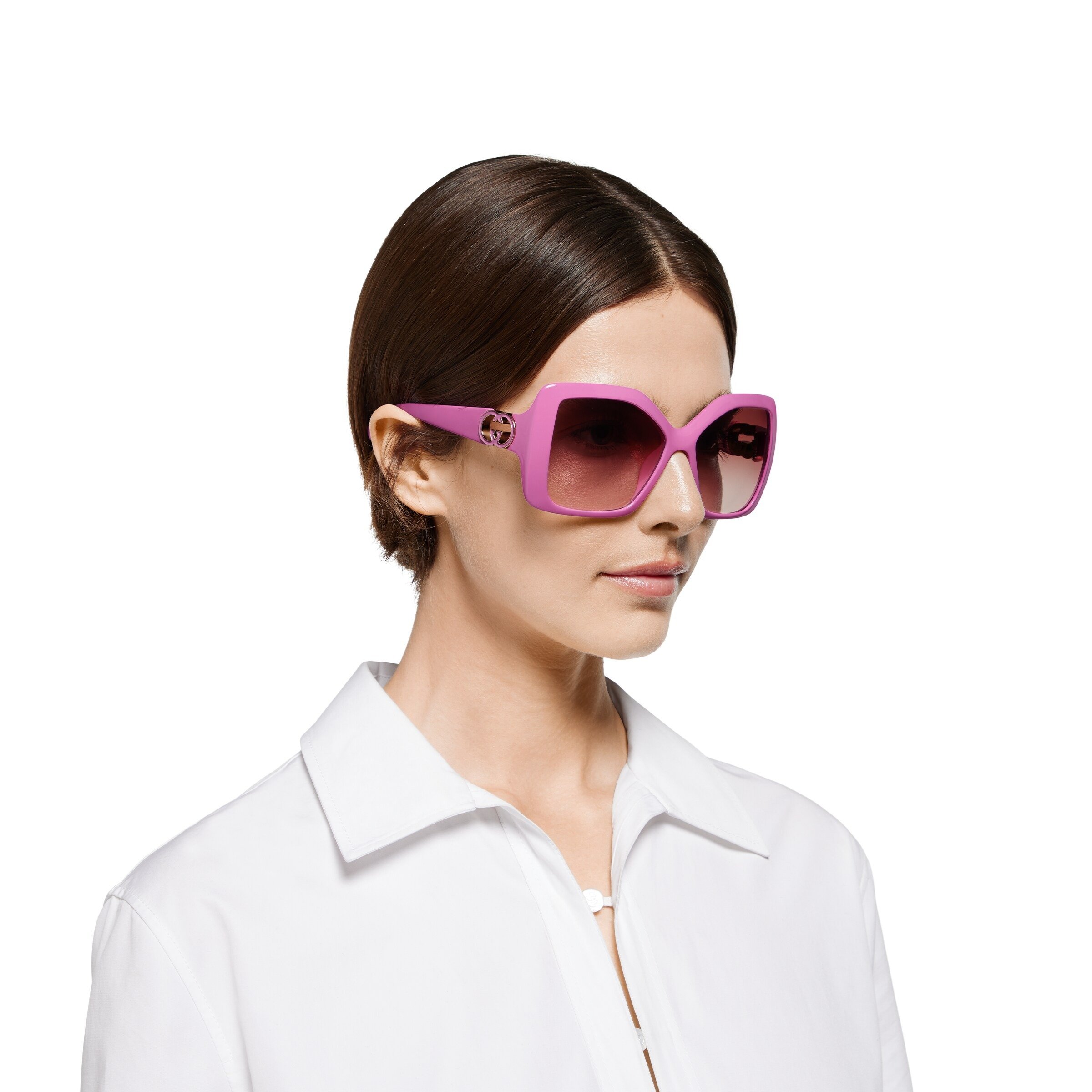 – Shiny pink injection temples with pink enameled cut-out Interlocking G logo